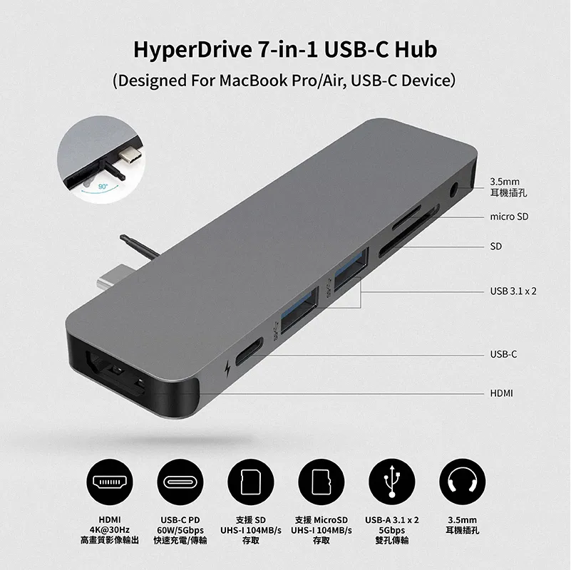 HyperDrive 7-in-1 Hub 都能成為你的最佳幫手。
