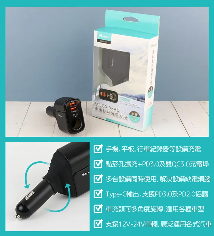搶先評價 “infotec 英富達CC104 雙QC3.0+PD車用點菸器擴充座”