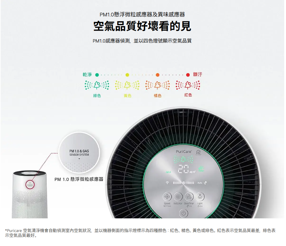 空氣品質一目了然,智慧調整風速,自動應對每一種污染變化。