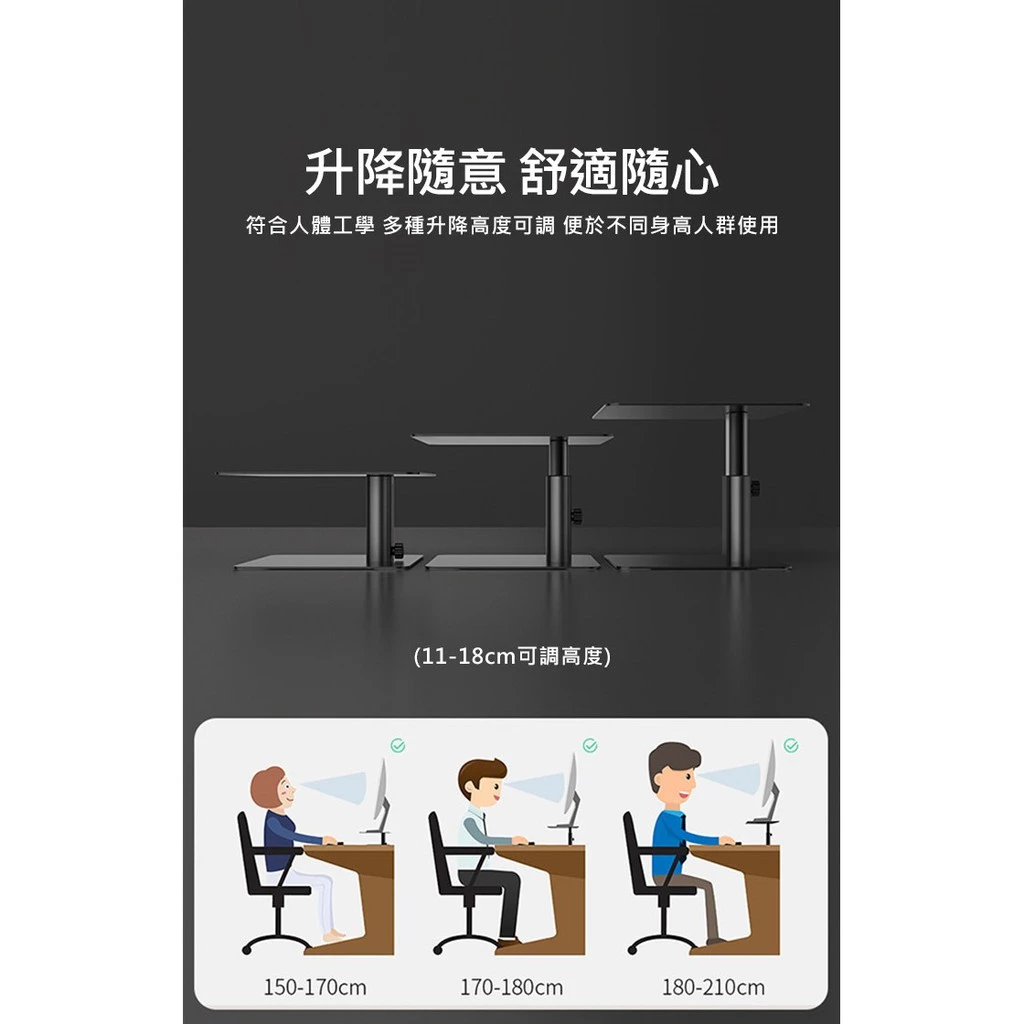11-18cm 高度可調:依需求輕鬆升降,打造舒適工作角度。
